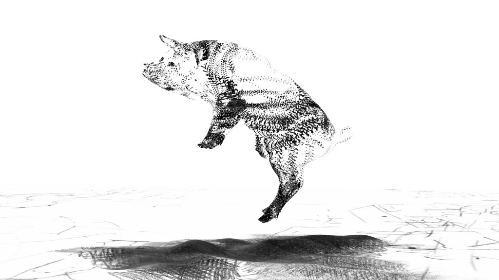 À travers ses vidéos d’animation, Michel Boulanger développe des univers graphiques et des récits rattachés au domaine rural. La ferme, avec son architecture particulière, ses champs en culture, ses animaux et sa machinerie nourrit un imaginaire embrassant des considérations sociologiques et écologiques.