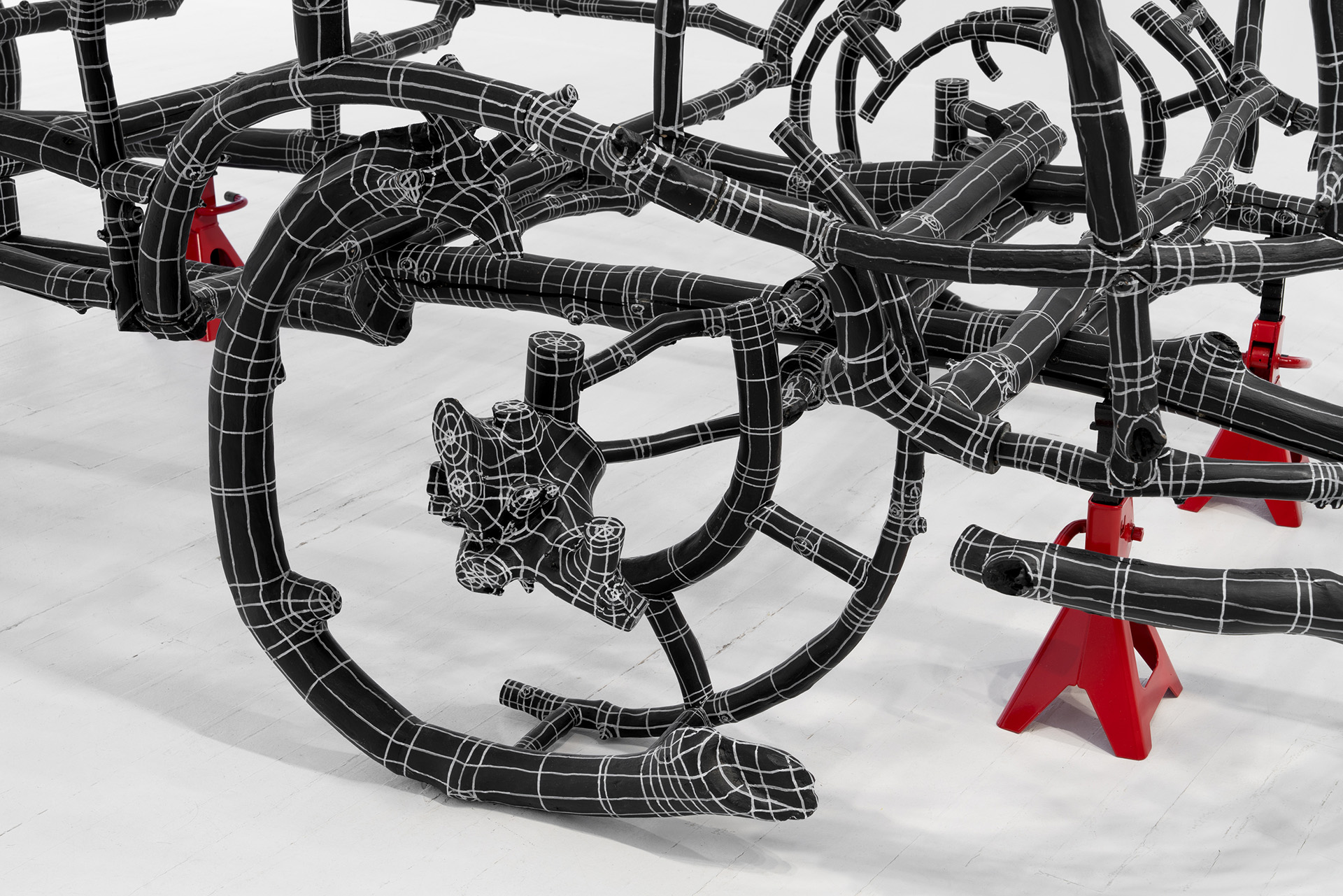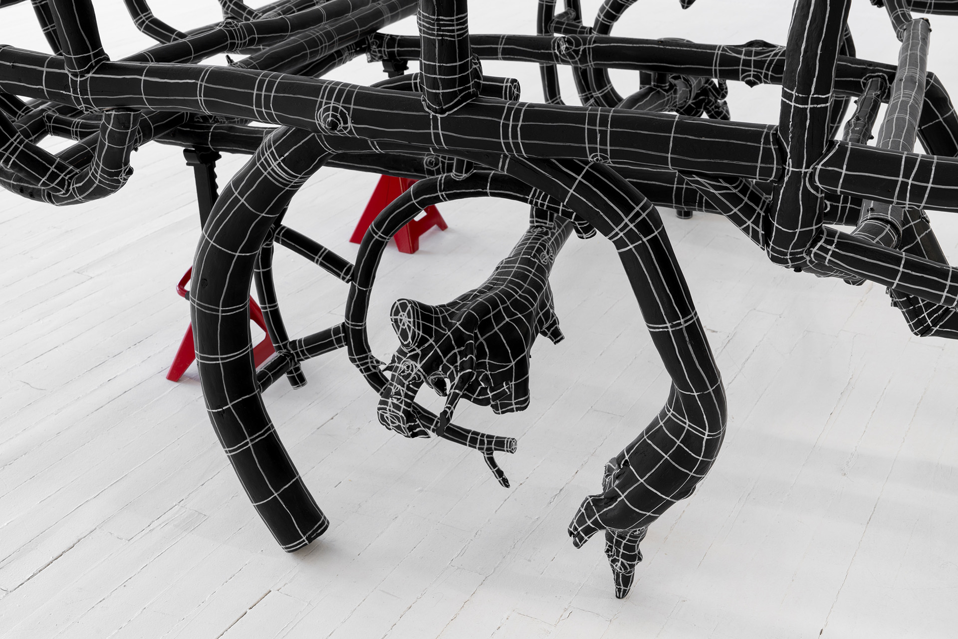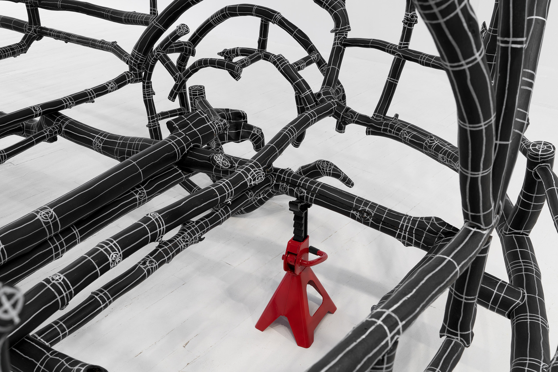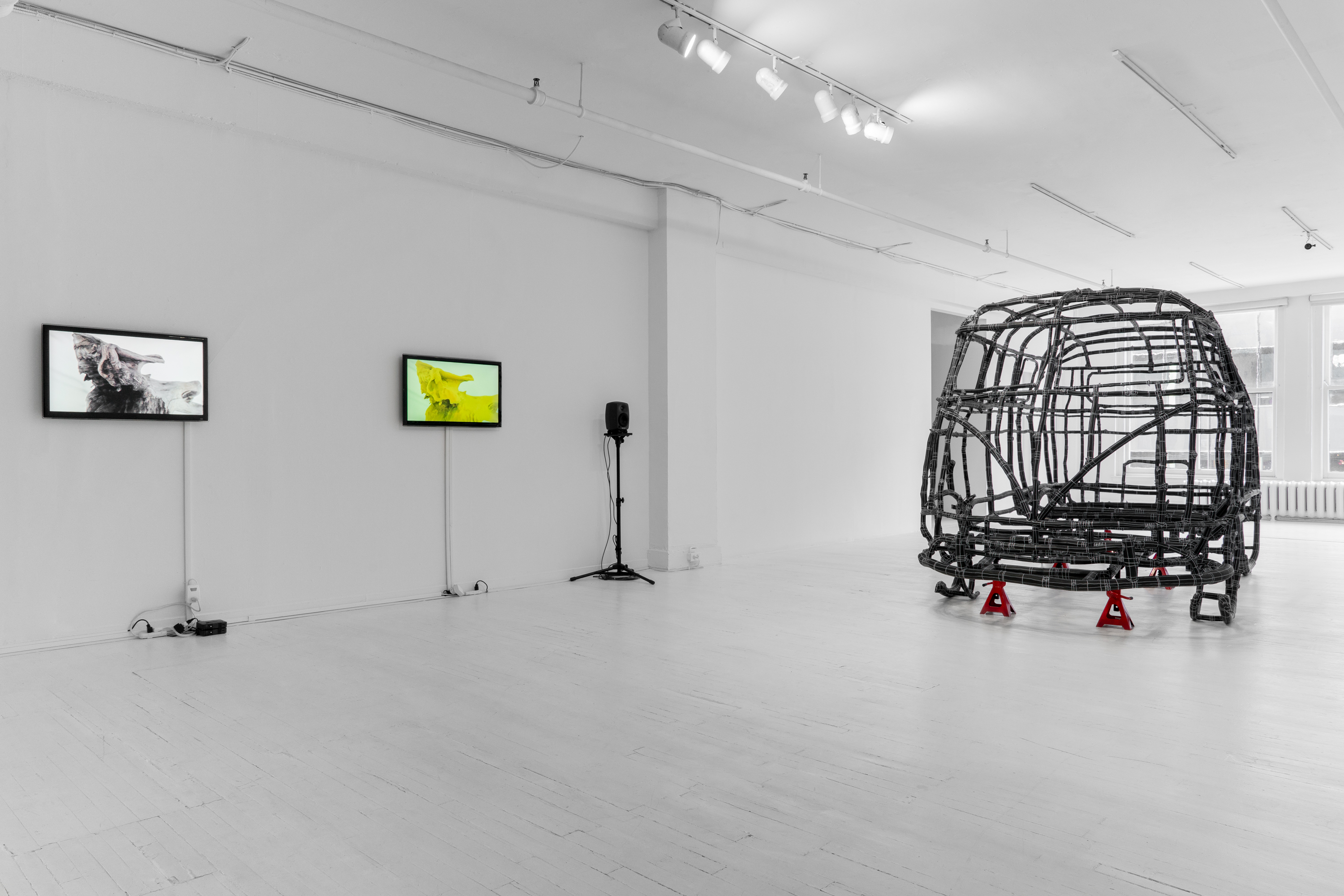 L’exposition de fortune est une installation composée d’une sculpture monumentale au titre éponyme et d’une vidéo d’animation double canal intitulée Paréidolies.